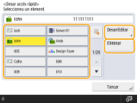 Si voleu editar les opcions del botó d'accés ràpid, premeu <Desar/Editar>. Per obtenir informació sobre com editar les opcions, vegeu el pas 7 a Desament de destinataris a la llibreta d'adreces. Quan hàgiu acabat d'editar, premeu <Bé>.