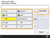 És convenient desar una destinació utilitzada freqüentment en un botó d'accés ràpid. Això us permet especificar ràpidament una destinació només prement un botó. A més de desar un número de fax o una adreça de correu electrònic en un botó d'accés ràpid, també podeu desar una ubicació de carpeta de servidor de fitxers (adreça IP i camí) per utilitzar-los quan desen dades llegides.