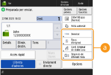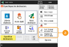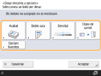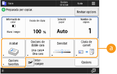 Els botons d'opcions que apareixen a les pantalles de funcions bàsiques (de còpia, fax i lectura) es poden canviar per altres botons d'opcions a <Opcions>. Si col·loqueu botons d'opcions utilitzades freqüentment a la pantalla de funcions bàsiques, podreu utilitzar les funcions amb més eficiència. A més, si inicieu sessió amb la gestió d'autenticació personal, podeu mostrar una pantalla de funcions bàsiques diferent que estigui personalitzada per a cada usuari.
