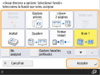 A <Opcions favorites>, podeu desar procediments utilitzats freqüentment per copiar, i també destinacions especificades freqüentment i opcions de lectura. Per obtenir més informació, vegeu Desament d'una combinació de funcions utilitzades freqüentment.