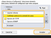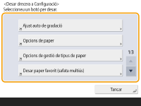 Si no es mostra <Drecera a Configuració> a la pantalla <Inici>, premeu  <Opcions de gestió d'inici> <Restringir funcions mostrades>  <Establir> seleccioneu <Drecera a Configuració> per mostrar.