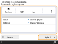 Opcions que es poden desar a <Opcions favorites> per a la funció <Llegir i desar> Configuració de la pantalla i les operacions per llegir a Desar