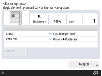 Quan apareix la pantalla per seleccionar la mida de l'originalSi l'opció <Selecció paper> està establerta en <Auto>, és possible que s'obri la pantalla per seleccionar la mida de l'original. Aquesta pantalla apareix perquè la mida de l'original no es pot verificar i el paper no es pot seleccionar automàticament quan es tracta d'originals d'alta transparència, originals amb un color base extremadament fosc o originals de mida petita. Seleccioneu la mida de l'original o una mida semblant a la de l'original.