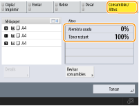 Podeu comprovar la quantitat restant de consumibles des de Remote UI (IU remota). Comprovació de l'estat de l'equip