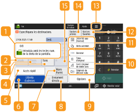 Mostra el nom i el número de fax de la destinació i el nombre de destinacions que heu especificat.