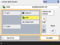 Pot utilitzar la llibreta d'adreces remota o el botó d'accés ràpid