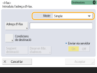 Per enviar a un dispositiu de la mateixa xarxaSi voleu enviar un I-fax a un dispositiu de la mateixa xarxa, podeu enviar-lo directament al dispositiu, sense passar pel servidor de correu. Establiu <Enviar via servidor> a <Off> abans d'enviar l'I-fax.