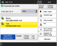 Consultar el nombre total de destinacions especificadesEl nombre total de destinacions especificades apareix a la part superior dreta de la pantalla. Això permet confirmar que el nombre de destinacions és correcte abans d'enviar.