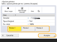 Podeu desar una sèrie d'opcions d'enviament, lectura o destinació especificades abans de prémer  (Inici) com a un sol grup d'opcions prèvies.