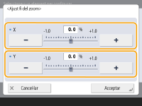 Establiu l'ampliació de <X> per a l'ajust de l'amplada horitzontal i l'ampliació de <Y> per a l'ajust de l'amplada vertical.