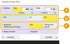 Si establiu la funció PFS (Perfect Forward Secrecy) en <On>, la confidencialitat de la clau de xifratge augmenta, però la velocitat de la comunicació es redueix. A més a més, la funció PFS s'ha d'activar al dispositiu interlocutor de la comunicació.
