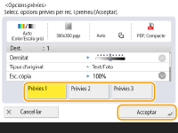 Recuperació d'opcions utilitzades anteriorment per enviar/desar (Opcions prèvies)