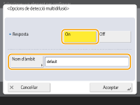 Introduïu un nom d'àmbit especificat utilitzant les opcions de detecció multidifusió a <Nom d'àmbit>.