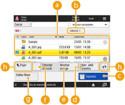 Visualitzeu la carpeta la informació de la qual vulgueu comprovar i premeu <Oper. amb carpetes>.