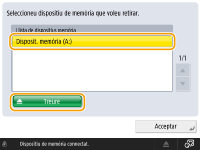 Seleccioneu el dispositiu de memòria que voleu desconnectar i premeu <Treure>.