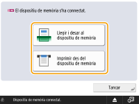 Si l'opció <Seleccionar opció en connectar dispositiu de memòria> està establerta en <On>, quan inseriu el dispositiu de memòria es mostren les dreceres a les funcions disponibles. <Seleccionar opció en connectar dispositiu de memòria>