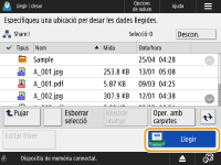 Localitzeu la ubicació per desar els per desar el fitxer i premeu <Llegir>.