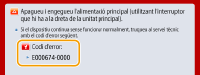 Apareix un missatge que indica que cal posar-se en contacte amb el vostre distribuïdor local o servei tècnic
