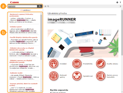 Kliknutím zobrazíte informace, jak používat Uživatelská příručka, jak v ní provádět hledání a jiné informace.