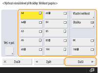 Jestliže si velikosti papíru, které často používáte, uložíte pod tlačítka <S1> až <S4>, můžete je vyvolat jediným dotekem. Uložení volné velikosti papíru (Vlastní velikosti papíru) do paměti stroje