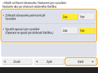 Vyberete-li <Zap> současně pro <Zobrazit obrazovku potvrzení při Vyvolání> a <Spustit operaci pro vyvolání (Operace se spustí po stisknutí tlačítka.)>, kopírování se spustí po výběru volby <Ano> na potvrzovací obrazovce.