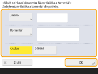 Zadejte název tlačítka a komentář, vyberte <Osobní> nebo <Sdílená> a stiskněte <OK>.