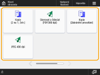 Stiskněte <Kopie>  zadejte nastavení kopírování. Obrazovka <Hlavní obrazovka>