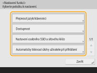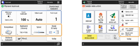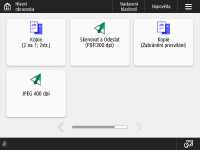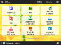 Tlačítka nastavení, která se zobrazují na obrazovce základních funkcí (pro kopírování, faxování a skenování), můžete změnit. Můžete také zobrazit jinou obrazovku základní ch funkcí, která bude přizpůsobená pro každého přihlášeného uživatele.