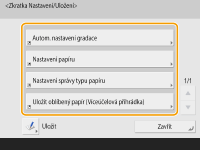 (Nastav./Uložit), můžete vytvořit zkratku. Pokud často používáte položku nastavení, která je k dispozici na velmi hluboké úrovni, můžete pomocí dané zkratky rychle přepnout zobrazení.