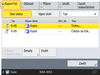 Stiskněte <Kopie/Tisk>  <Stav úlohy>.