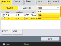 Z rozevíracího seznamu vyberte <Kopie> a zobrazí se kopírovací úlohy čekající na zpracování.