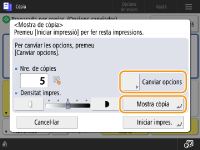 Stiskněte <Změnit nastavení>, chcete-li změnit nastavení. Po provedení změn nastavení se zobrazí <Vzorek kopírování>. Zhotovte znovu vzorek kopírování.
