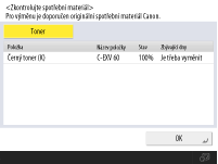 Stav zbývajícího množství spotřebního materiálu můžete zkontrolovat z Remote UI (Vzdálené UR). Kontrola stavu stroje