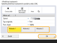 Řadu nastavení míst určení, skenování nebo odesílání zadaných před stisknutím tlačítka (Start) můžete uložit jako jednu skupinu předchozích nastavení.