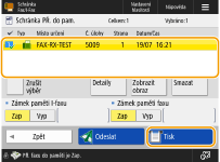 Chcete-li vytisknout všechny dokumenty uložené v paměti, stiskněte <Vyp> pro <Zámek paměti faxu> nebo <Zámek paměti I-faxu>. Krok 5 můžete vynechat.