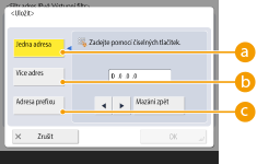 S pomocí této volby zadáte jednotlivou IP adresu, kterou chcete označit jako výjimku. V případě IPv6 stisknutím <Adresa> zobrazte obrazovku pro zadávání.