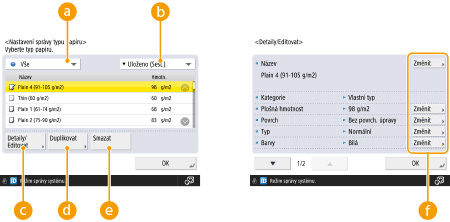 <Nastavení správy typu papíru>.