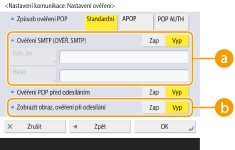Chcete-li provádět ověřování s pomocí serveru POP3, stiskněte <Zap>.