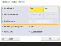 Obyčejně stiskněte <Zap> v <Autodetekce>. Komunikační systém a typ Ethernetu jsou detekovány a nastaveny automaticky.