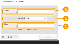 <Místo> se zobrazí, když v nastavení protokolu vyberete <SMB>, a <Hostitelské jméno> se zobrazí, když vyberete <WebDAV>.