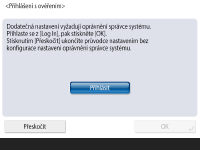 Nastavení vyžadující přístupová práva administrátora (správce) můžete přeskočit a přejít k dalšímu kroku stisknutím <Přeskočit>. V tomto případě přejděte ke kroku 10.