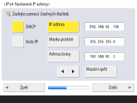 Pro automatické získání IP adresy stiskněte <DHCP> nebo <Auto IP> a stiskněte <Další> nebo <OK>.
