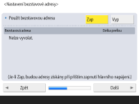 Stiskněte <Zap>, chcete-li používat ruční adresu, nebo <Vyp>, nechcete-li používat ruční adresu, a stiskněte <Další>.