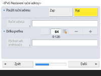 Stiskněte <Zap>, chcete-li používat bezstavovou adresu, nebo <Vyp>, nechcete-li používat bezstavovou adresu, a stiskněte <Další>.
