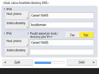 Jsou-li nastavení IPv4 a IPv6 stejná, stiskněte <Zap> pro <Použít stejné jm. host./domény jako IPv4>.