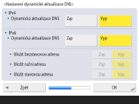 Nastavíte-li <Dynamická aktualizace DNS> pro <IPv6> na <Zap>, vyberte <Zap> pro položky, které se mají ukládat automaticky.