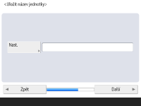 Stiskněte <Hostitelské jméno> a zadejte název stroje (hostitelské jméno). Stiskněte <Jméno domény>, zadejte jméno domény, do níž stroj patří, a stiskněte <Další>.