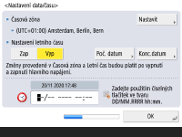 Podle potřeby nastavte <Časová zóna> a <Nastavení letního času>. Další informace viz Nastavení data/času.
