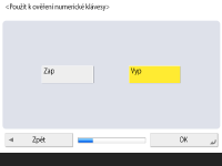 Pro použití ověření pomocí zadání číselných tlačítek pouze na přihlašovací obrazovce stiskněte možnost <Zap> a poté stiskněte <OK>.