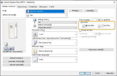 Na obrazovce [Základní nastavení] ovladače nastavte položku [Orientace] na stejnou orientaci, jakou jste nastavili v kroku 1.